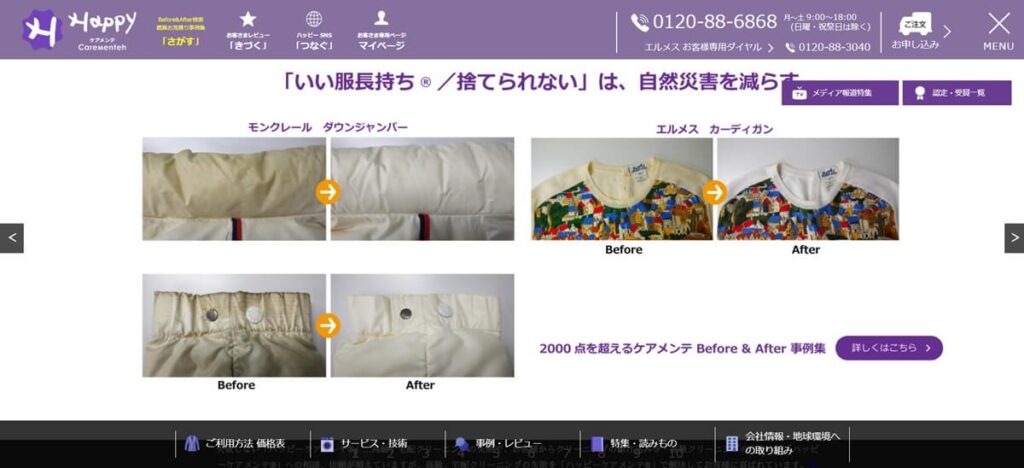 | ハッピー ケアメンテ | 10,890円~ | 1ヶ月〜1か月半 | 独自の洗浄・復元・仕上げの高度技術 |