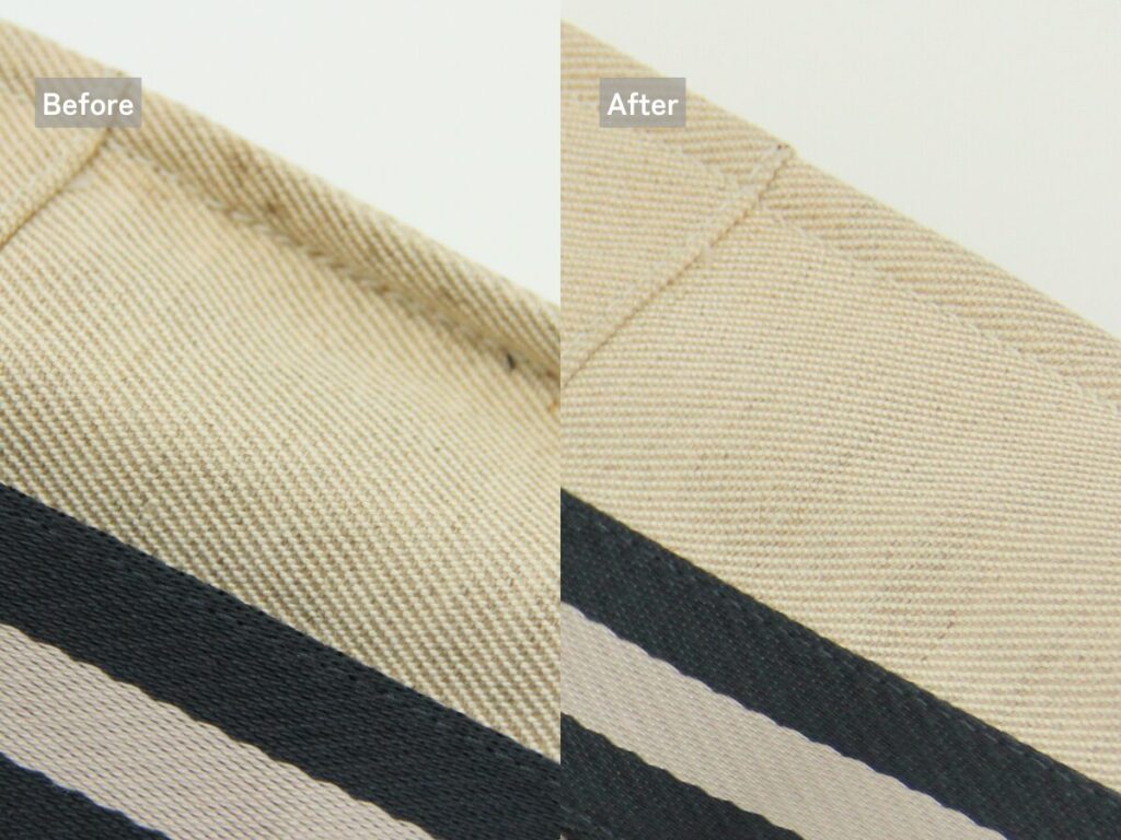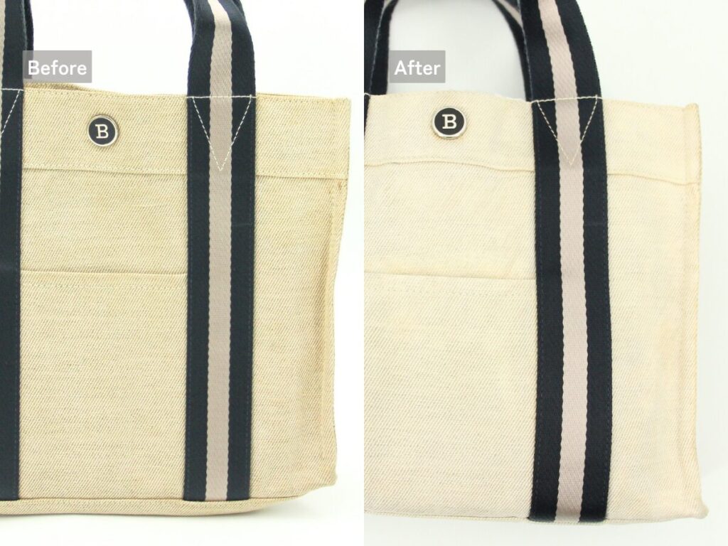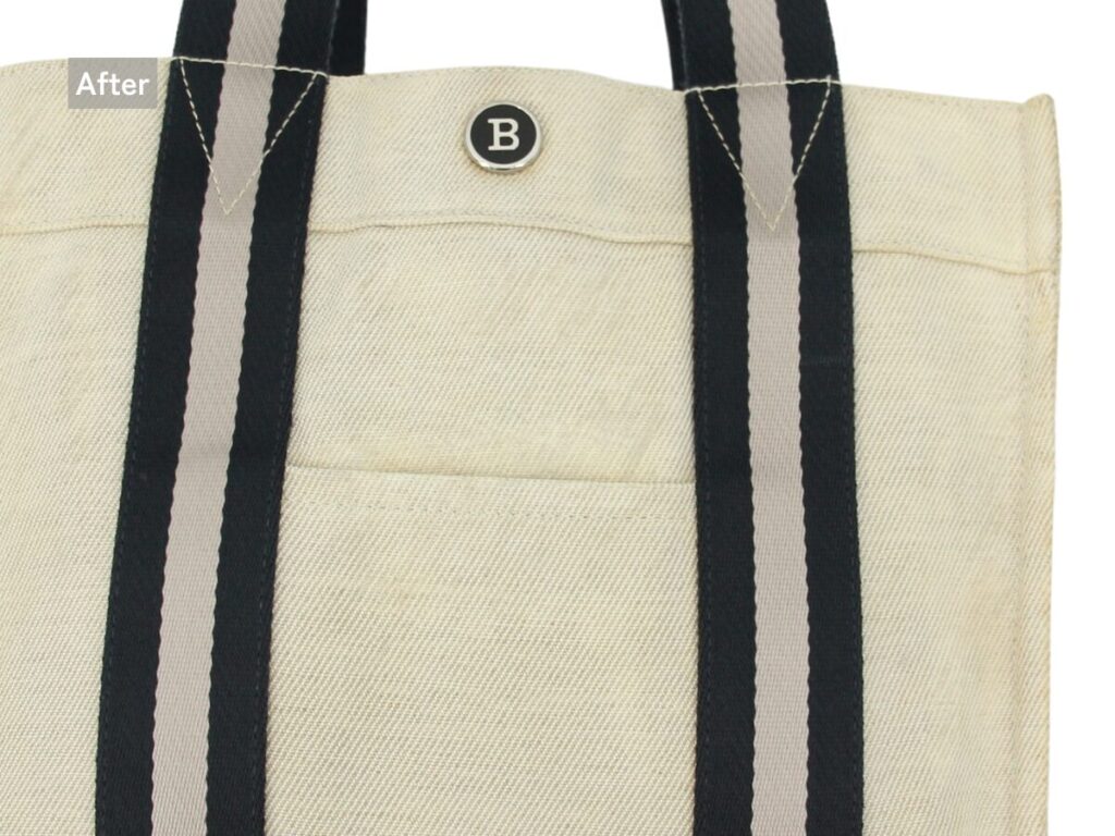 黒ずみが目立っていた持ち手も見違えるようにキレイになり、キャンバス本来の柔らかな質感が戻りました。